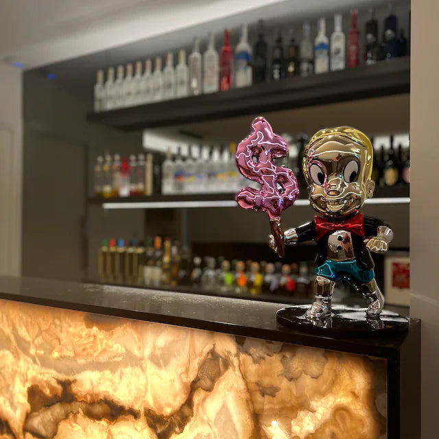 ريتشي™ تُجسّد روح الفخامة والسحر الخالد، حيث تمزج بين ثقافة البوب والفن الراقي. لمستها النهائية من الكروم والطلاء الكهربائي النابض بالحياة يجعلان من هذه القطعة المحدودة الإصدار رمزًا للفخامة المرحة، مصممة خصيصًا لهواة الجمع الذين يبحثون عن فنّ مميز يُثير الأحاديث.