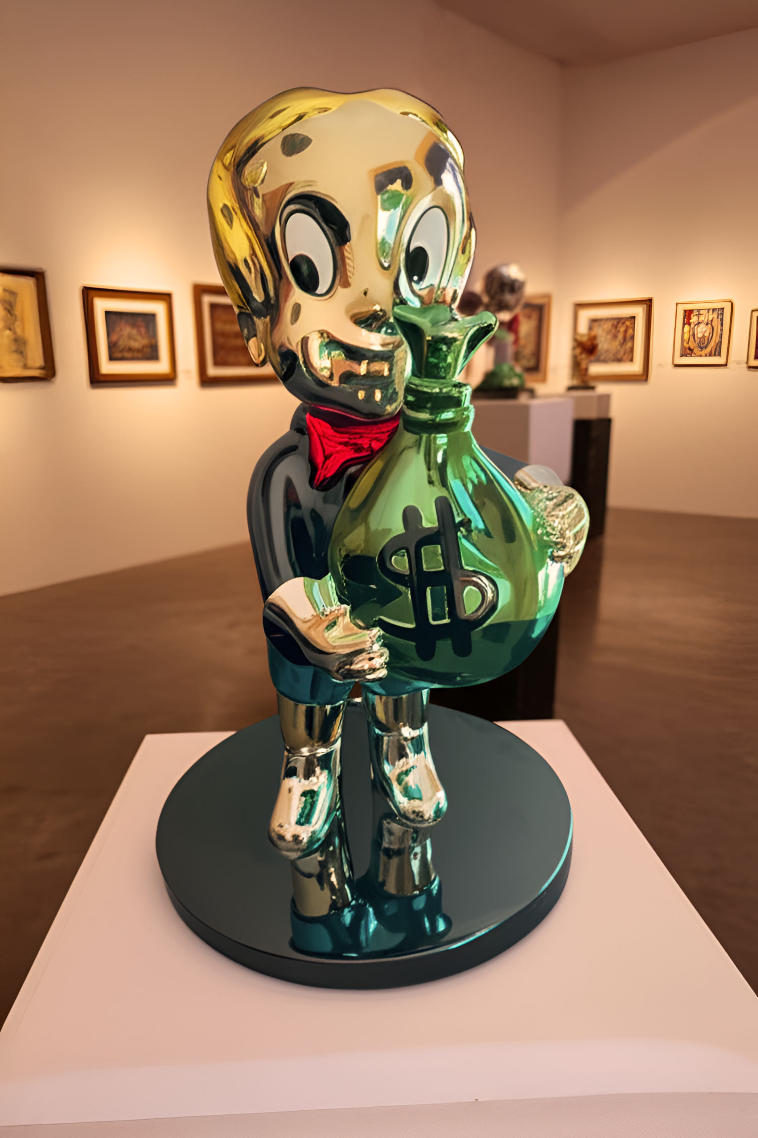 حقيبة ريتشي ريتش دولار™ تجمع بين حنين ثقافة البوب والفخامة العصرية. يُضفي الكروم المصقول كالمرآة والطلاء الكهربائي النابض بالحياة لمسةً من الثراء والطموح. كجزء من مجموعة محدودة الإصدار، تُجسّد هذه المنحوتة فخامةً مرحة، مثالية لهواة جمع الأعمال الفنية النادرة والحصرية.
