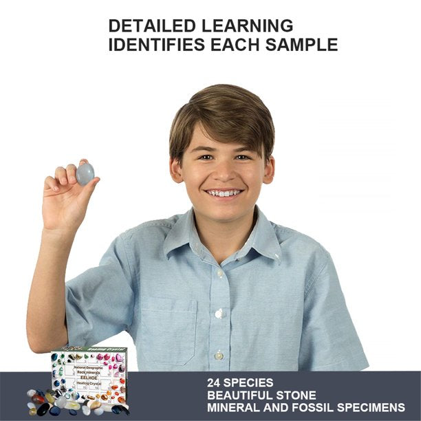 - مجموعة أحجار مثالية للأطفال - مجموعة مثالية مستقلة أو إضافة مميزة لأي مجموعة أحجار أطفال. تتضمن عينات خامة ومصقولة من الأفينتورين، والكوارتز الوردي، وسبج ندفة الثلج المذهل، ووردة الصحراء، واليشب الأحمر، والكوارتز الأزرق، والخفاف، وعينات من النيازك. هدية مثالية لطلاب العلوم والتكنولوجيا والهندسة والرياضيات (STEM) للبنات والأولاد!