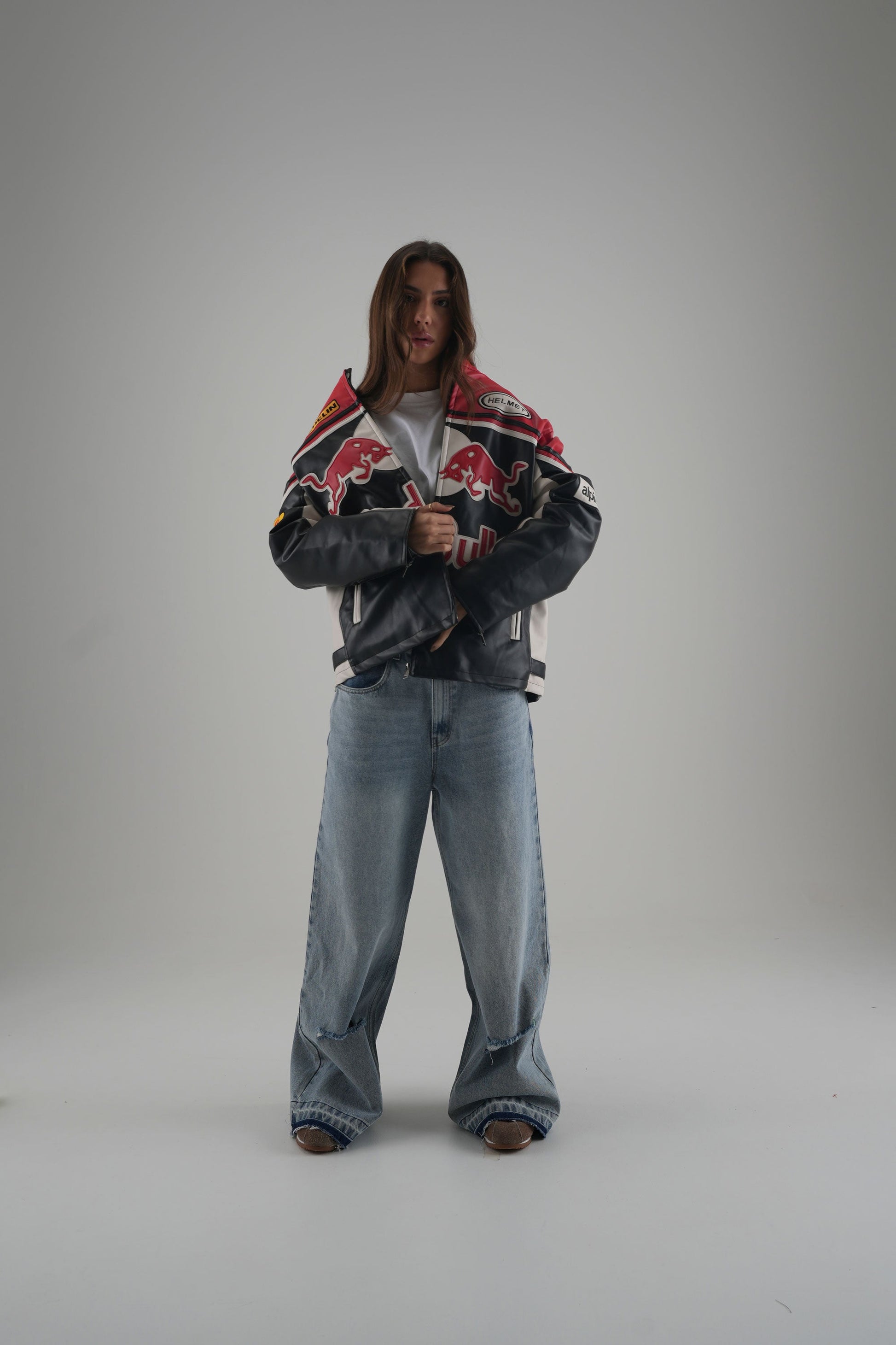 Engineered for adrenaline. The Red Bull Racing Leather Jacket blends premium black leather with bold Red Bull branding and retro F1-inspired patches. Designed with a heritage racing cut and vibrant color accents, it channels the energy and edge of Red Bull's rise in modern Formula 1—crafted for those who race on and off the track.
